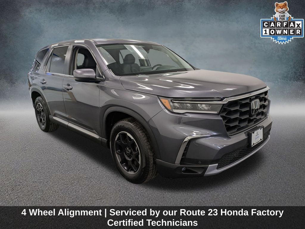 Oil Change, Wiper Blades - Top Off All Fluids, 4 Wheel Alignment, Serviced by our Route 23 Honda Factory Certified Technicians, Call Route 23 Honda For a Test Drive TODAY!, AWD, 3rd row seats: split-bench, 4-Wheel Disc Brakes, 4.167 Axle Ratio, 9 Speakers, ABS brakes, Adaptive Cruise Control: Adaptive Cruise Control (ACC) with Low-Speed Follow, Air Conditioning, Alloy wheels, AM/FM radio: SiriusXM, Apple CarPlay/Android Auto, Auto High-beam Headlights, Auto-dimming Rear-View mirror, Automatic temperature control, Blind Spot Information (BSI) System warning, Brake assist, Bumpers: body-color, Delay-off headlights, Driver door bin, Driver vanity mirror, Dual front impact airbags, Dual front side impact airbags, Electronic Stability Control, Emergency communication system: HondaLink Assist, Exterior Parking Camera Rear, Four wheel independent suspension, Front anti-roll bar, Front Bucket Seats, Front Center Armrest, Front dual zone A/C, Front fog lights, Front reading lights, Fully automatic headlights, Garage door transmitter: HomeLink, Heated door mirrors, Heated Front Bucket Seats, Heated front seats, Illuminated entry, Knee airbag, Lane departure: Lane Keeping Assist System (LKAS) active, Leather Seat Trim, Low tire pressure warning, Memory seat, Occupant sensing airbag, Outside temperature display, Overhead airbag, Overhead console, Panic alarm, Passenger door bin, Passenger vanity mirror, Power door mirrors, Power driver seat, Power Liftgate, Power passenger seat, Power steering, Power windows, Radio data system, Radio: 245-Watt Audio System, Rear air conditioning, Rear anti-roll bar, Rear reading lights, Rear seat center armrest, Rear window defroster, Rear window wiper, Reclining 3rd row seat, Remote keyless entry, Security system, SiriusXM, Speed control, Speed-sensing steering, Speed-Sensitive Wipers, Split folding rear seat, Spoiler, Steering wheel mounted audio controls, Tachometer, Telescoping steering wheel, Tilt steering wheel, Traction control, Trip computer, Turn signal indicator mirrors, Variably intermittent wipers. Odometer is 2653 miles below market average! CARFAX One-Owner.